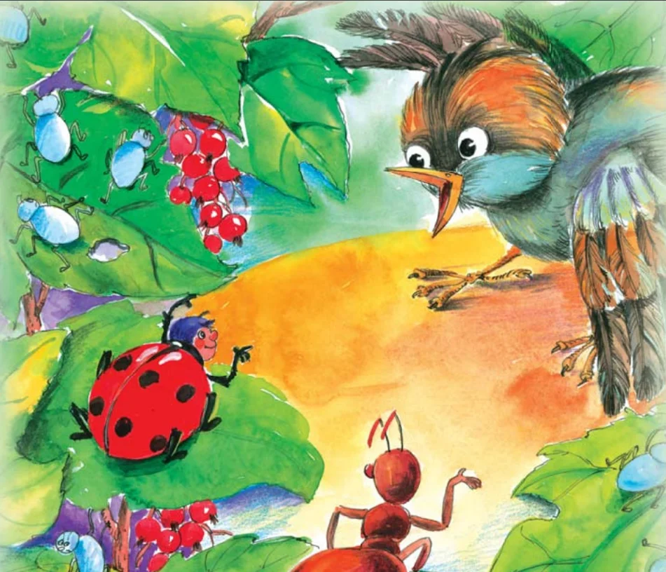 – Әбден қарным ашты, олар дәмді ғой! Бөжектерге бекер жа ның ашиды. Олар өсімдікке зиян келтіреді. Жапырақтардың сөлін сорып алады, ал жапырақтар одан ауруға шалдығады, – деп жауап қатады қанқызы.